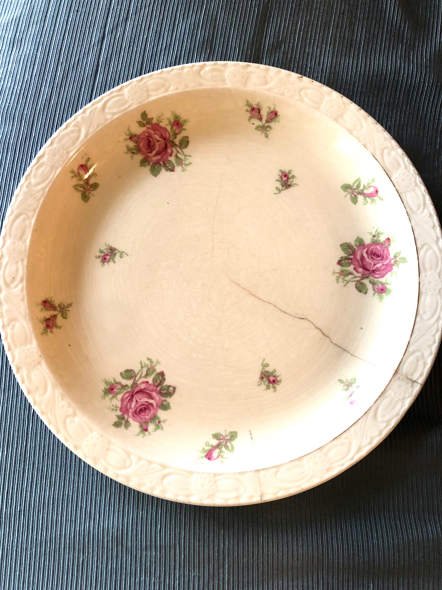 Because my favourite dinner plate that I found in an op shop a few years back, has a crack in it. It’s the perfect victim for her heartless creations.