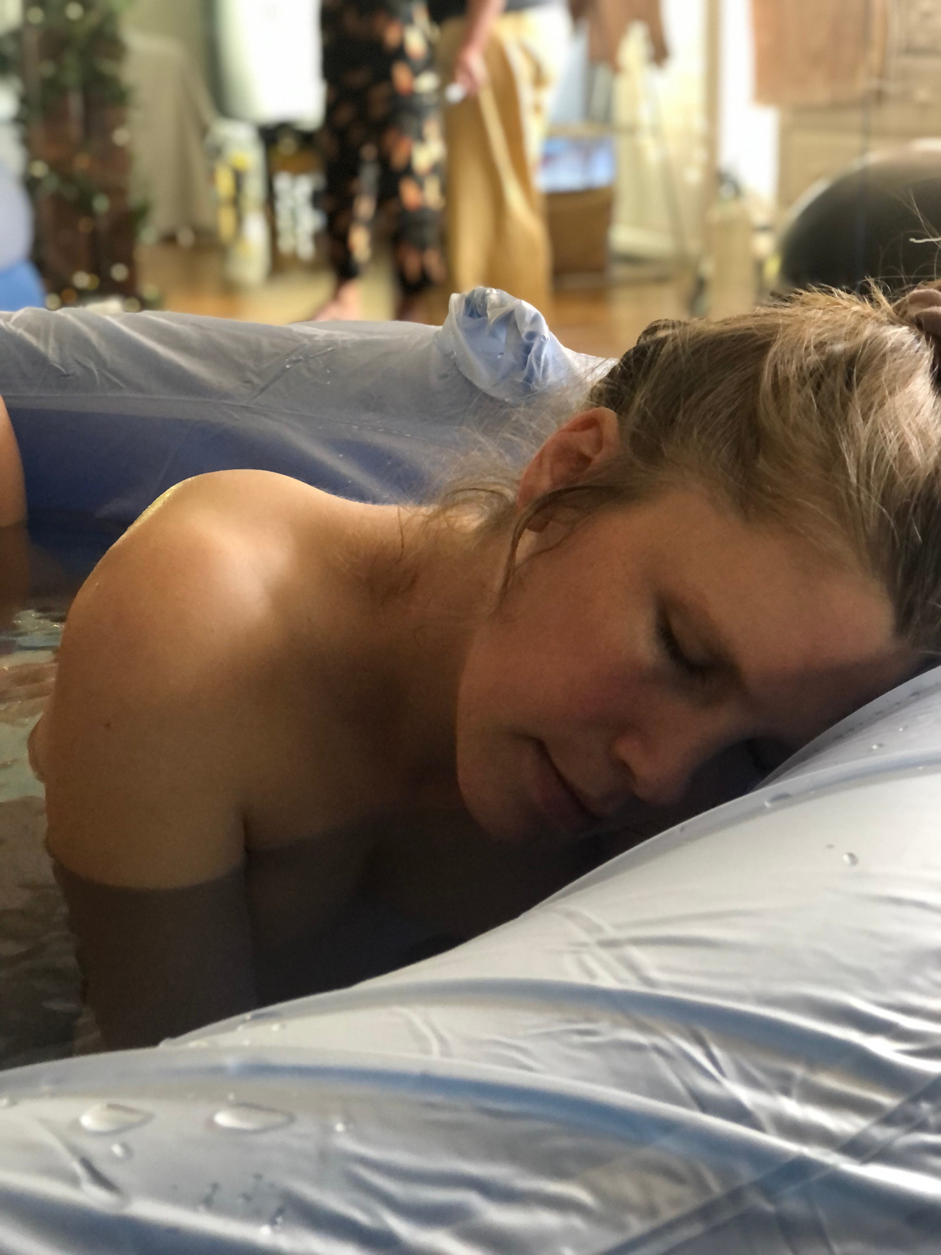 I was trying to do horse lips (thanks Ina May) at one point and accidentally put my face under the water. Later during a quiet moment, I mentioned almost drowning myself and we all started laughing. It was so good to laugh. It was very soon after this (and likely no coincidence) that transition set in and things got way less cute.