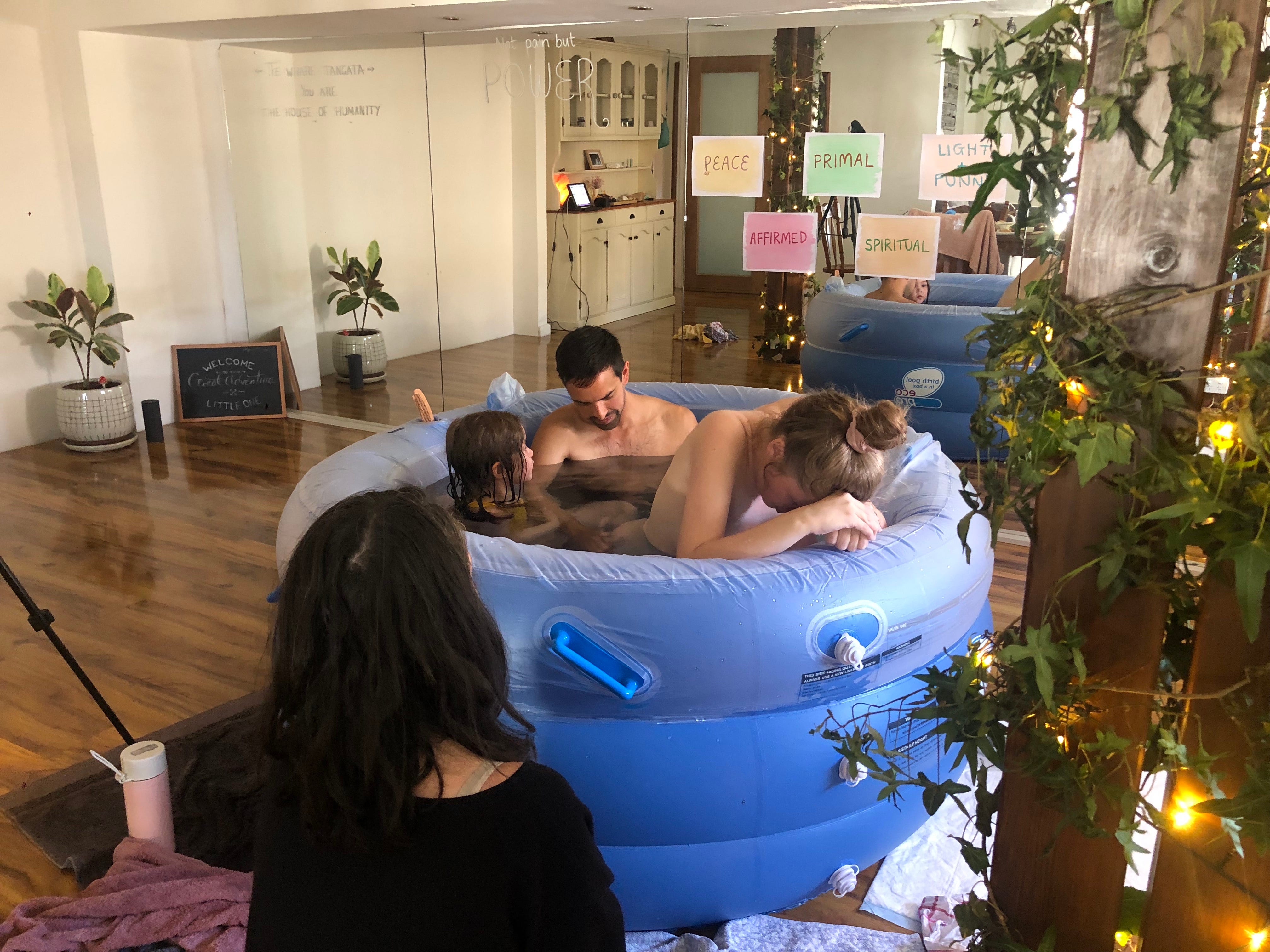 I think I left the pool just once to use the toilet. Jarrod joined me in the water after a short while. Then Halo put her bathers on and climbed in too. We were surprised, to say the least. She is very protective of and sensitive to the energy around her. We thought she wouldn’t cope. We worried Jarrod would have to leave the room with her and miss the birth, but we had come to terms with the possibility. But I think the combined calm and faith of everyone present was what helped her feel safe in the space. She climbed in and sang and played for over an hour. Maybe more. What is time? She was so chill.