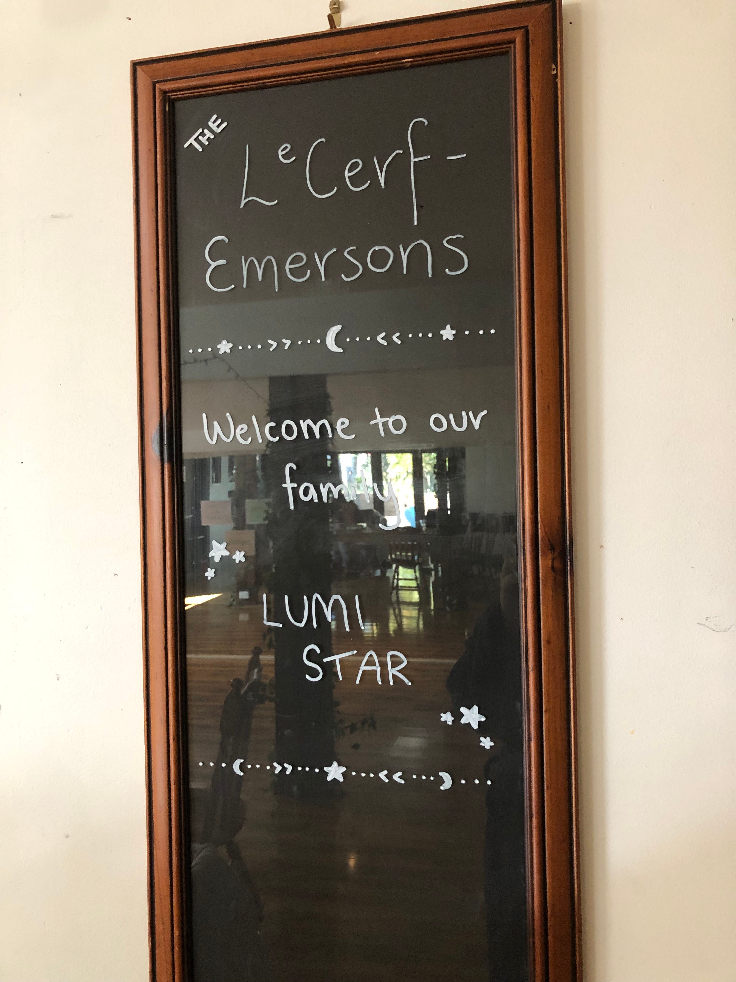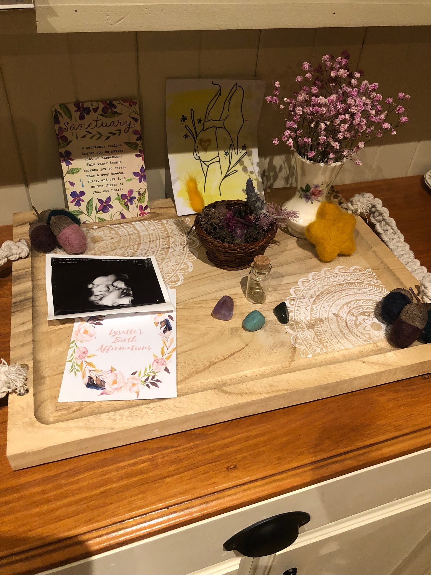 At around 3am the next morning, I started having contractions. Same as last time - just like constant period cramps. I was up and swaying under the fairy lights immediately because welcoming a baby is like the Christmas of all Christmases! I had Dusk’s beautiful affirmations (from Halo’s birth) on the wall, some aspirational defining words for the labour and some welcome messages for baby. I wandered around reading them and breathing, delirious with excitement.